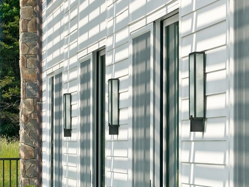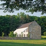Architect Jim Fraerman balanced those needs for prospect and refuge by placing the structure a short distance from the existing house so scenes out every window or door encompass the lush landscape—a rolling field and a forest beyond. The comfort factor comes in the form of geothermal heating for literal warmth along with rooms of human scale that produce a feeling of safe haven, but still open up to each other and the scenery.