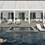 The screen is a tightly spaced trellis designed to allow breezes in, but keep low afternoon sun out—making the pool deck a pleasant spot any time of day. In addition to generating a physically appealing space, the sunscreen exaggerates the barnlike form of the building and visually links it to the pool. “The spirit of the thing is that this property was at some point a farm, so the main house is a farmhouse,” Fraerman explains. “This project became an outbuilding that fits the barn to the house idea.”