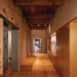 Built on an abandoned lot, the six attached houses are 11 blocks from Indianapolis’ center—the landmark Monument Circle—and are within walking distance of restaurants and retail. The rowhomes provide a structural transition between the community’s larger industrial buildings and its single-family homes, while their exterior design—a modern aesthetic softened by natural-feeling textures such as painted lap siding and slatted-wood entry surrounds—helps balance the contrasting styles of stark commercial structures and traditional bungalows.