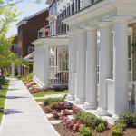 Built around two existing riparian corridors, the 27-acre village is divided into two hamlets, each with its own distinct architectural vocabulary (one is Colonial; the other, Craftsman). A cost-efficient, chassis-style building program allowed the design team to conserve on framing, while spending a little more on memory points, such as chunky porch columns, exposed rafter tails, and four-sided brick quoining on corner buildings facing greens and other public spaces. “Those were conscious decisions to spend money in the right way,” says architect Murphy Antoine, a principal with Torti Gallas and Partners. “But where we really saved was in the density and the smaller square footage of the units themselves. We sacrificed a little bit of living room space to get a tighter community feel and to encourage people to go out and be part of the campus culture.”