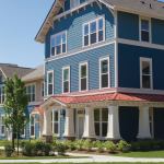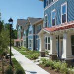 Which explains the genesis of Masonvale. Offering a welcome alternative to a long commute, this new pocket community provides workforce housing for young professors within walking distance of the campus. Its 157 Energy Star–rated rental units—a mix of one- and two-bedroom stacked flats, two- and three-bedroom townhomes, and duplexes—are on fixed term leases so they can be used as an ongoing recruitment tool.