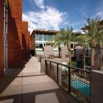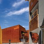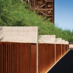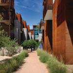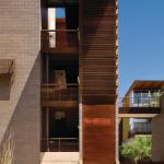 Modest in scale, the complex, which borrows its name from the 1950s-era Safari Hotel that once occupied the site, is also restrained in its resource consumption. Certified by Scottsdale’s green building program for multifamily dwellings, it makes judicious use of deep overhangs, thermal mass construction, tight building envelopes, a neighborhood-wide hydronic loop heating and cooling system, and naturally weathering materials such as oxidized Cor-Ten steel and concrete block. A public courtyard in the village center is passively cooled by an evaporative “cool tower,” a simple piece of engineering borrowed from Middle Eastern Kasbah design.