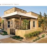 The LEED Silver-certified units are all single story. To preserve views of mountains and nearby Whitewater Wash for more residents, the taller two-story paired sixplexes of stacked flats are on the low side by the wash. The sixplexes wrap around a shared courtyard and have elevators to address residents’ aging-in-place needs. On the high side of the property, toward the mountain views, the units are one-story duplexes and triplexes, each with its own private courtyard. They range in size from 795 to 1,092 square feet and rent for between $525 and $575 a month.