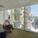 “Normally the higher levels of senior care are relegated to the back of the bus because people who are able-bodied don’t want to be reminded of their future,” observes architect Rob Steinberg. “We put the memory care and assisted living in very public parts of the campus on purpose. We wanted people to be able to sit in their apartments and still feel connected.”