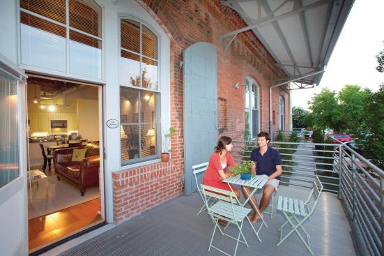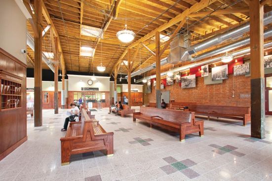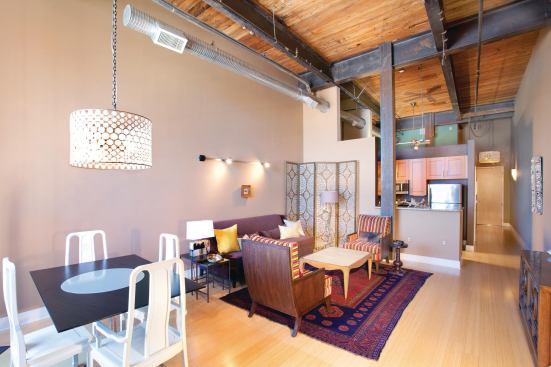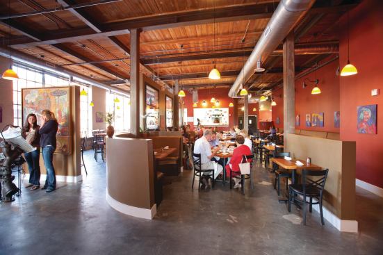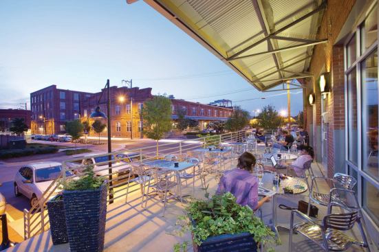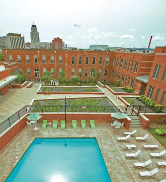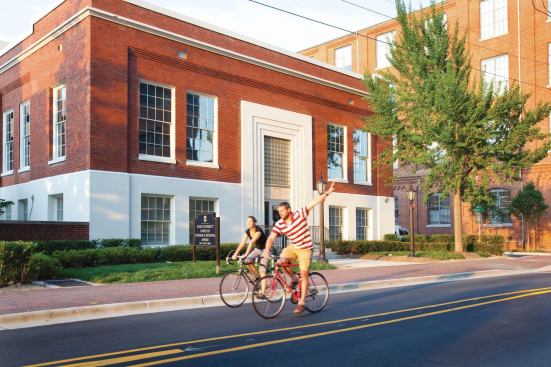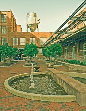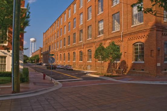 Nowadays, movie directors seeking landscapes of despair should look elsewhere. The place is very different since local developer Blue Devil Ventures hired J Davis Architects and Barnhill Contracting to resurrect the five structures built between 1899 and 1926. Spanning the better part of five city blocks, the historic site is now home to 209 funky loft-style apartments, 61,700 square feet of office space, 44,250 square feet of retail fronting downtown Main Street, and a 463-space parking garage.