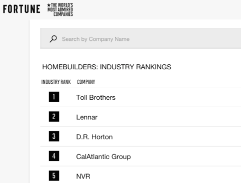 This is a helpful context for looking at the companies Fortune has selected as home building’s “most admired companies” in 2017. Here’s the list: