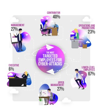 Lower-level employees, such as customer service representatives, were subject to 67% of highly targeted attacks, with marketing, public relations, and human resources employees accounting for roughly 20% of all attacks.