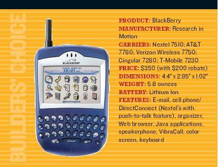 Long Haul Builders may well spend the next three or four years sorting out and testing handheld technologies before they settle on the solution that works best for their company. Since so many builders are Nextel customers already, upgrading to a BlackBerry 7510 and signing on with a warranty management, punch list, or a GPS application will be easier for them.