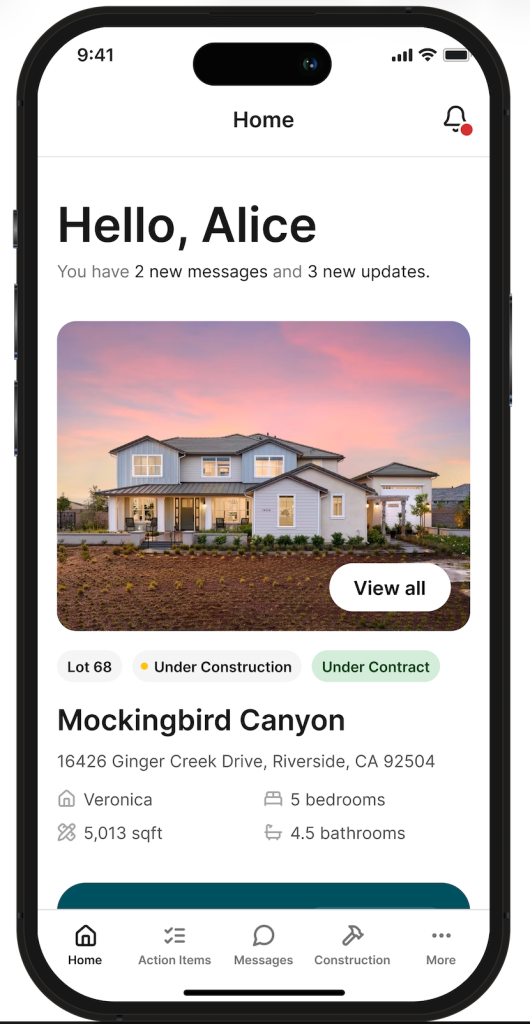 The centralized system has also changed internal workflows. Customer care representatives can review the full history of a buyer’s journey before their first meeting, and all team members can see communications across different construction phases. The platform is available as both a mobile download and web portal.
