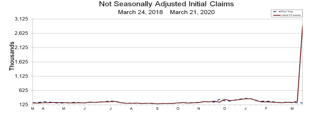 • Lest there be any remaining doubt, a fourth article this am starts, “About 1 million to 4 million people may have filed for unemployment benefits last week, the largest number ever in such a short time.”
