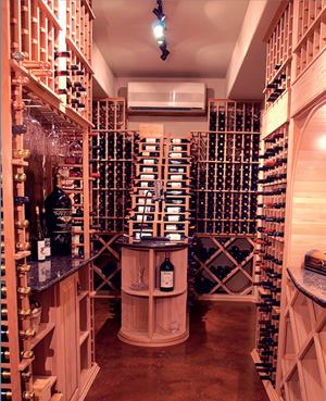 Koder says his company prefers to get involved before construction. It comes up with designs that meet clients’ available space and desired storage capacity. Then, it provides instructions for insulation and wiring, along with the cooling system. Wine Trend Inc. manufactures, ships, and installs the racks, and, if desired, will do millwork on site.