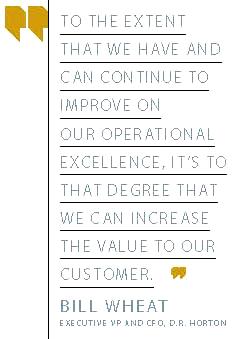 “To the extent that we have and can continue to improve on our operational excellence, it’s to that degree that we can increase the value to our customer, including that entry-level buyer’s first homeownership experience,” says executive vice president and CFO Bill Wheat.