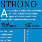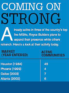 Its rationale: Market conditions notwithstanding, Royce doesn’t change the basic disciplines of how it goes about evaluating the viability of land deals, looking at new business opportunities, and exploring new market entries. What has changed is Royce’s opportunity. Now when everybody else is looking to sell–especially the publics–Royce just very well might want to buy, because its plans call for it and its metrics support it.