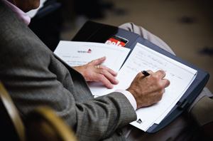 Jeff Jacobs, Building Advisory Group; and Larry Wisdom, Keystone Custom Homes Photo: Jamie Windon There was hardly a dull moment during the Purchasing sessions, which comes as no surprise. From the hearty and infectious laugh of senior editor Bill Gloede to the wisecracks of builders to the devil’s advocacy of suppliers and trades, there was plenty to keep attendees on their toes.