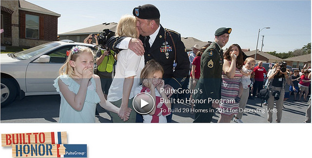 Per a Pulte Group press statement, “PulteGroup announced that 25 national building materials companies committed to donating time and materials in support of the Built to Honor program, whose 2014 goal is to donate 20 homes to deserving veterans.”