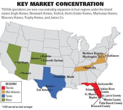 Eager to begin, Technical Olympic moved quickly to establish a U.S. affiliate, Technical Olympic USA (TOUSA), and began searching for a place to invest. It didn’t take long. By December of 1999, TOUSA purchased 80 percent of the outstanding common stock of Newmark Home Corp., based in Sugar Land, Texas, for $86 million. Then, in 2000, TOUSA set its sites on Boca Raton, Fla.-based Engle Homes, which was being aggressively marketed for sale. Engle provided geographic diversity as well as attractive mortgage and title businesses. By November, TOUSA closed the deal, acquiring 98 percent of Engle’s common stock. While both companies continued to operate as independent entities, the directors from Newmark, including Newmark’s founder Lonnie Fredrick, and their new Greek partners began planning a merger in 2001. The Greeks’ goal was clearly to expand its U.S. operations, but underlying challenges quickly became apparent.