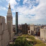 The building’s skinny 12:1 proportion is the result of purchasing air rights for the narrow site. By applying a strategic approach to the structural system—interior reinforced concrete shear walls and a rooftop slosh tank mitigate any lateral movement—the architects were able to free up the exterior curtain walls so that each of the 71 luxury apartments comes with a sweeping view of Manhattan.