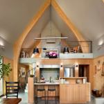 Broad, low pitched roofs shade the open-air living spaces that surround the living room.