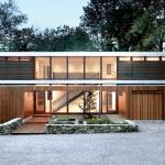 But Greenwich is also close to New Canaan, Conn., home of the so-called Harvard Five. History was made there 60 years ago when, fresh from the Harvard University Graduate School of Design, Marcel Breuer, Eliot Noyes, Landis Gores, Philip Johnson, and John Johansen moved to the bucolic countryside, introducing ideas that flew in the face of old New England architecture. It’s fitting that Moore, AIA, chose this manicured enclave, where classical old houses commingle with the moderns, to explore the contrasts that have intrigued him since architecture school: What is modern and what is traditional, and how does contemporary architecture connect, in a dynamic way, to history, culture, and ideas about domesticity while also moving them forward?