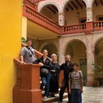 Cathi and Steven House pose with students on a field trip to the 1732 Hospice of the Holy Trinity, in Guanajuato.