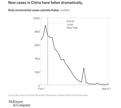 Is it recognition that in China’s Hubai province, “first-time epicenter of the pandemic,” new infections have reportedly shrunk to single-digits? That’s approximately 10 weeks from the earlier reports of the spread of the disease.