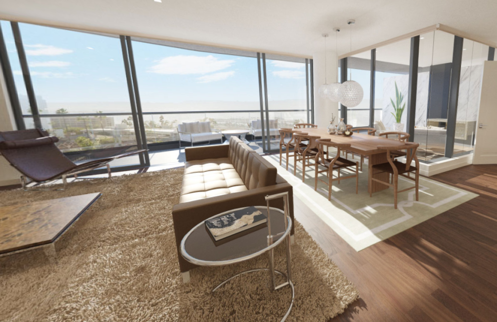 Unlike most VR experiences that use photography to mimic real life, Zephyr used realistic renderings, which provide more design flexibility, he says. Prospective buyers can take tours of the penthouse units, townhomes, tower residences, and amenities that include a pool, fitness center, yoga studio, clubroom, and terrace with fire pits.