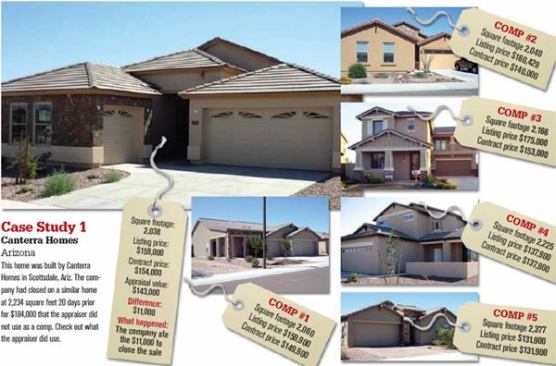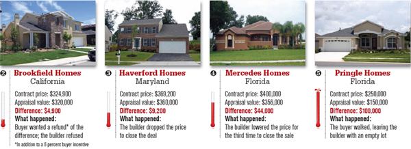 Moreover, a low-ball appraisal or a restricted cap on loan-to-value means either the builder has to concede on price or the home buyer has to ante up more cash at the closing table. And the latter is hardly happening.