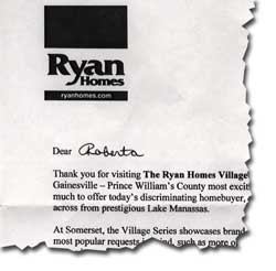 One community in particular comes to mind. I think it was the total indifference of the salesperson to my questions and concerns that was most puzzling, almost intriguing, in fact. The community she presided over was in horse country, largely undeveloped and at the end of a long road bordered by rolling hills and neat, white fences. I asked about the location of and distance to schools and plans for future retail development nearby. She replied that, not needing these services herself, she had never really thought about it. Several questions later, I left the model no more enlightened than when I’d entered. How odd, I thought. Didn’t she want to sell these half-million-dollar homes? (She couldn’t find a map of the community to hand me either.) Needless to say, I didn’t receive a follow-up note from her. But, then, most of the sales centers I visited didn’t send one either, which brings me to my next point.