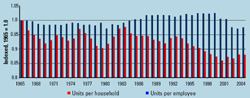 2004-2005. Since June 2004, the Fed has executed a typical tightening, with 11 increases of 25 basis points each in the fed funds rates to 3.75 percent currently. The yield curve has inverted, however, and mortgage rates have decoupled from their typical relationship with short-term rates. As such, the 30-year fixed rate is at 5.8 percent, up just 60 basis points from its low in June 2003. Lower rates along with steady job increases and consumer confidence are driving robust housing demand, which in turn is driving record earnings power for the home builders.