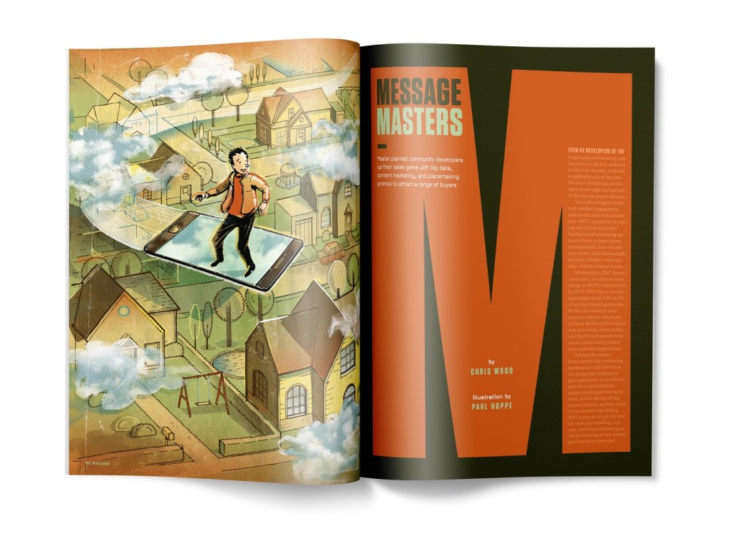Marketing in 2017 doesn’t come easy, nor does it come cheap, as MPCs interviewed by BUILDER report marketing budgets from 1.5% to 2% of total estimated gross sales. While the resource pool remains robust, allocation of those dollars is finding its way to writers, drone pilots, and food truck operators to create and sustain immersive customer experiences.