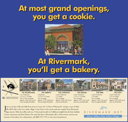 Program: Grand-opening event; Builder/Developer: Rivermark Partners (a partnership among Centex, Lennar, and Shea) Santa Clara, Calif.; Price: $500,000 to $800,000-plus; Ad agency: Gauger + Santy, San Francisco