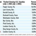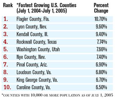 Fastest-Growing Counties For the second straight year, Florida’s Flagler County, spanning the Atlantic Coast from Daytona Beach to Jacksonville, was the nation’s fastest-growing county, with a 10.7 percent population gain. All but one of the ten fastest-growing counties are located in either the South or the West, with Lyon County, Nev., being the exception.