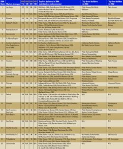 The survey results released in mid-September were based on responses from 64,502 new home buyers who had been living in their homes from four to 18 months. The survey giant, based in Westlake Village, Calif., polled 25 markets, including five markets it canvassed for the first time this year: Detroit; Ft. Myers/Naples, Fla.; Jacksonville, Fla.; San Diego (which was broken out from Southern California for the first time); and Seattle/Tacoma, Wash. Fort Lauderdale was dropped from the study. There were no major changes to the survey questions from last year, according to Paula Sonkin, J.D. Power’s senior director of real estate industries practice.