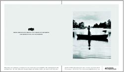 WHAT’S THAT WOMAN DOING STANDING UP IN A BOAT HOLDING a golf club? She’s enticing readers of The New York Times, Golf, Newsweek, and other publications to inquire about the custom home sites and land-home packages at The Estates at World Golf Village in St. Augustine, Fla., of course. Launched in early 2003 in regional editions, a series of three elegant (if a bit off-center) black-and-white print ads sought to attract seasonal buyers along the Eastern seaboard to the custom section of the mixed-use project.
