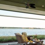 It’s ok to envy this space, to covet it for yourself. But marveling at the pool and its inset planters or longing for the loggia and its amenities is only half of the story. Dig a little deeper, and you’ll see a clever solution for keeping the pool safe and secure: The architect used the lot’s slight slope to the lake to create a retaining wall and gated steps that eliminated the need for a view-blocking fence around the pool. Then there’s the concealed insect screen for the loggia (see “Product Spotlight: Screen Play,” opposite page), seen only when needed so that the owners can still enjoy the outdoors without getting attacked. And let’s not forget the 3-foot-deep, steel-posted overhang that effectively shields the windows and doors on both levels along the bulk of the back elevation from the sun without intruding on their views. Beautiful and smart. Now that’s something to envy.