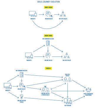 Consider the individual components of the current sales and marketing efforts of many builders today along with when they were roughly first introduced: websites (late ’90s); on-demand access to homes (2018); online design tools/interactive apps (2015); online sales (2005); and on-site sales and open houses (dawn of time).