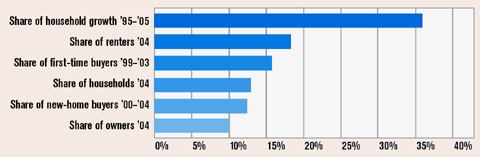 BIG ‘IFS’ Immigrants accounted for 37 percent of U.S. household growth between 1995 and 2005, represented 15.5 percent of first-time home buyers, and bought 12.4 percent of new homes, according to the Joint Center. And the group is expected to account for about a third of net household growth in the next decade, the Joint Center has estimated.