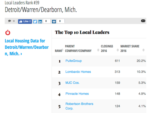 In Bloomfield Hills, MI-based Pinnacle Homes, M/I Homes has landed a trusted, adversity-tested, fast-growing Detroit-area operator, a top-5 market share, and a 1,000-lot pipeline with a 4-year-or-so horizon of sites in the hopper. Too, the deal brings 25-year vet and Pinnacle co-founder Howard Fingeroot, who supplies local intel and particular knowledge of the 55-plus, move-down customer segment that’s growing fast in the Southeastern Michigan marketplace.