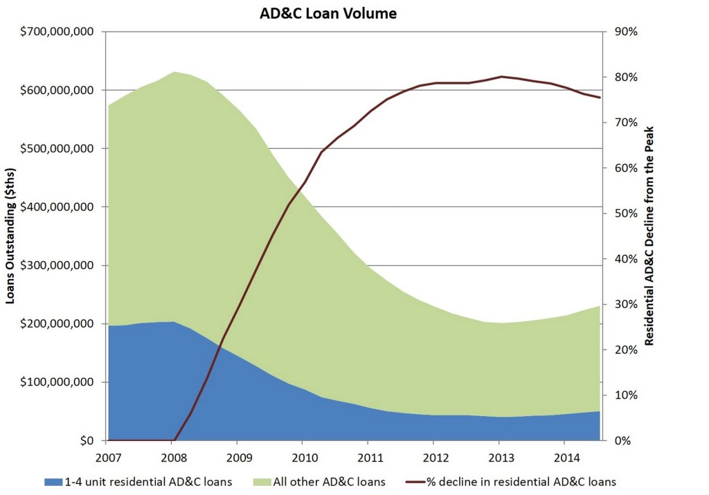 This past week, National Association of Home Builders tax and policy expert Robert Dietz has been combing Federal Deposit Insurance Company and other data to track progress in Acquisition, Development and Construction lending for builders.