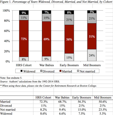 We see from other research here, a correlative trend, that women in the United States spend less of their time married, from about 70% to 50%, among age cohorts ranging from Depression Era women to mid Baby Boom era females.