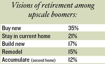 Could it be that the so-called “Me” generation still wants it all? You bet. Is it possible to design homes that leave these eager buyers feeling at once inspired, pampered, and prepared for the future? Hanley Wood handed the data over to two seasoned architects to tackle that question. From there, two concept houses emerged: a new suburban compound, conceived by Ed Binkley, national design director for Blood-good Sharp Buster (BSB), and a retooled plan for an existing subdivision by New York architect Dennis Wedlick. Below we extract some of the most salient findings from our study, throw in some other boomer data for good measure, and use the architects’ prototype designs to illustrate how the latest insights might translate into new visions of home.