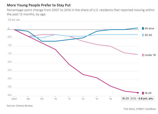 Here’s housing analyst Thomas Lawler’s observation on Millennial malaise in the latest Census American Community Survey data release on Bill McBride’s Calculated Risk site.