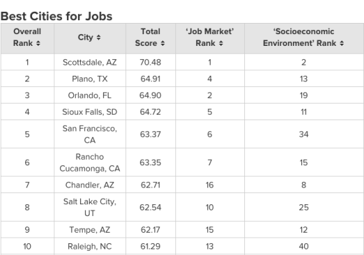 Still, in 2017, what may matter most to home builders and developers is more an issue of where the jobs are growing more abundant on a near-term basis, because that’s what will draw young, flexible households, especially ones currently paying high rents where they currently live, to move. WalletHub analyst Richie Bernardo looked at places and job prospects through three different filters–employment growth, “job opportunities,” and median annual income growth–and came up, here, with predictions on where the best and worst markets in the U.S. will be for job seekers in 2017.