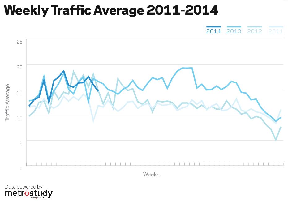 It’s time for the bears to wake up and realize spring has sprung, because we hit a new milestone at the end of March, even though the month was still harsh for winter weather. In looking at our weekly traffic numbers, the most significant story was seen in the final week of March. The last week of March recorded the best traffic and sales over at least the past four years for the same period. That was also the first week in 2014 that both the traffic and contract average surpassed the same data points in 2013.