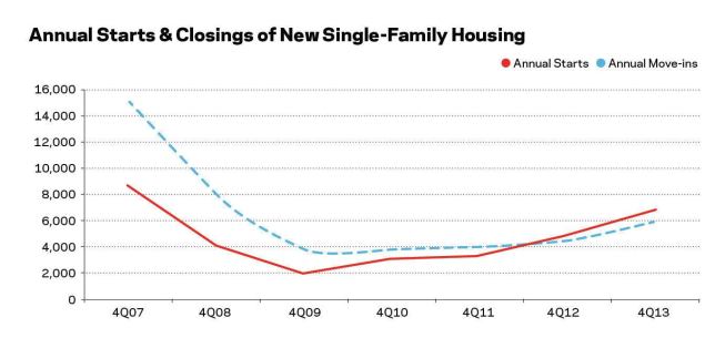Home sales slowed in the second half of 2013, thanks to a rise in mortgage rates and a surge in new-home prices that left buyers with sticker shock. The pace of new-home construction in South Florida slowed by 20 percent in the fourth quarter of 2013, with 1,437 housing starts versus 1,799 in the prior quarter. This level of home building is 4.7 percent higher than in the fourth quarter of 2012, but 29 percent off the 2013 peak attained in the second quarter. With that pause behind us, new-home activity has been gaining in 2014.