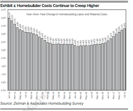 Still, material input cost inflation doesn’t stop there. As Ivy Zelman and her analysis team at Zelman & Associates note in the latest The Z Report, pressures on land, labor, and materials have converged, driving construction cost inflation to a level it hasn’t seen since May of 2014, 38 months.