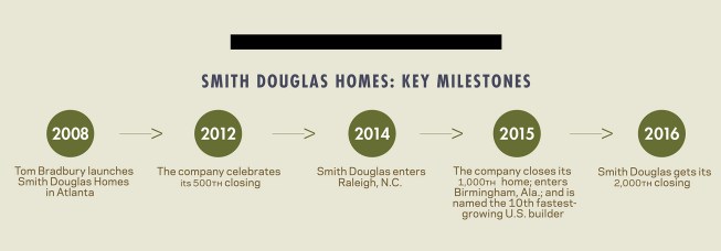 In 2016, the company closed 665 homes and generated $146 million in revenue. Take that and factor in 344% revenue growth and 501% growth in unit volume, and youâre where Bradbury, Schetter, and Bennett see Smith Douglas going. Soon.