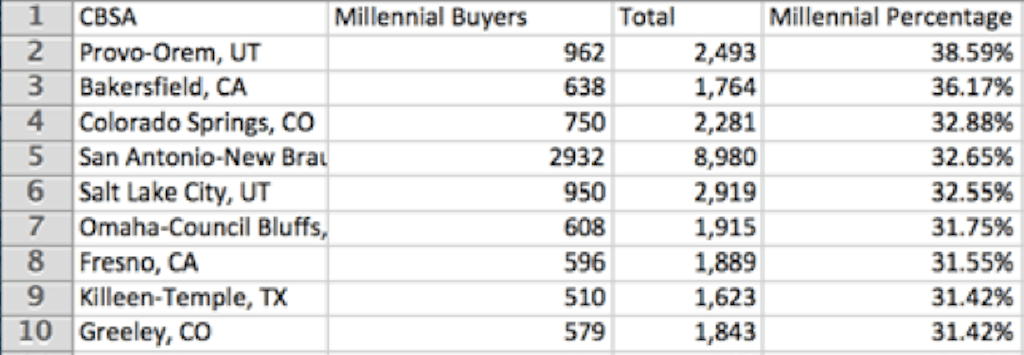 Want to know the markets where millennials are buying the most new homes? Here’s the top 10, and the top 25 are here, accessible if you register.