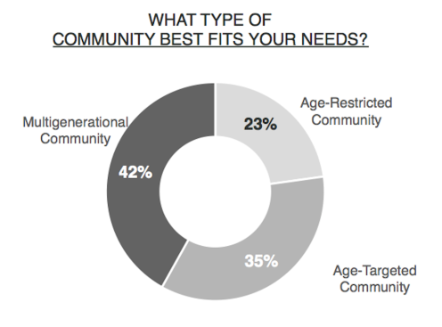 A second insight, for example is that multigenerational communities–nearness or integration with–are a high priority for 55+ respondents, as is evidenced here: