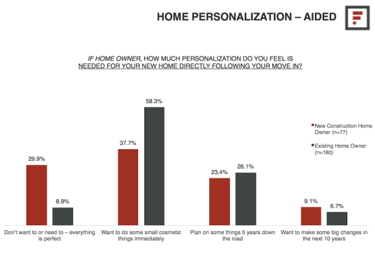 Thirdly, when it comes down to 55+ survey respondents’ anticipated desire to “personalize” their homes, many of them have plans to do so within fairly short order once they take ownership. Personalization–we know–happens both in the home itself and its features and function, but it’s also delivered in how amenities, community space, and interaction with other community residents occurs.